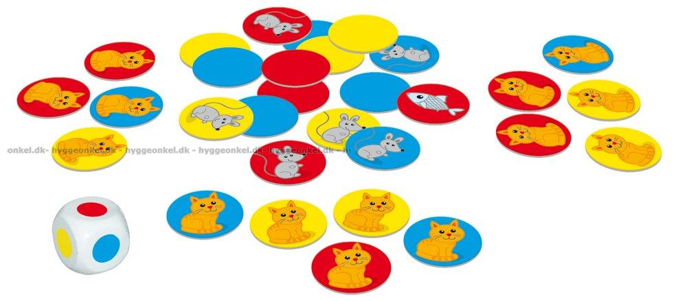 Är det en mus? Vänd upp brickan med låt den ligga kvar. När bara möss är kvar på bordet har den som fått flest katter vunnit.