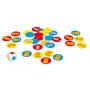 Spelet träner observationsförmåga och färger. Stora brickor av kraftig och hållbar kartong! Stor och härlig trätärning!