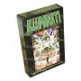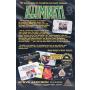 Kartongen för spelet innehåller kort, tärningar, marker och spelregler på engelska.