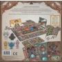Spelbräde, miniatyrfigurer i plast, kort, brickor, kuber och marker.