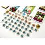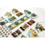 Asken innehåller bräde, marker, kort och spelregler på engelska.