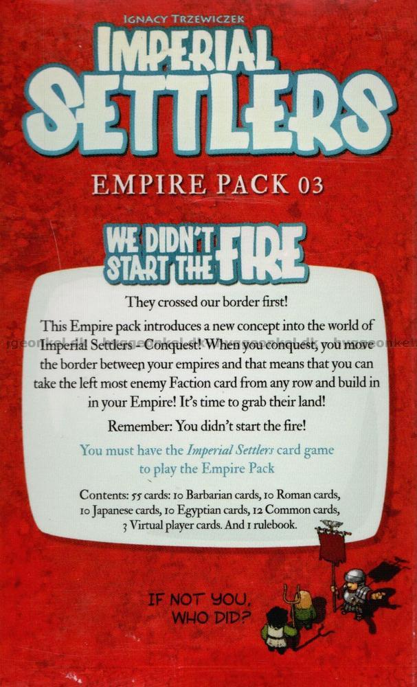 Imperial Settlers: We Didn’t Start the Fire är en expansion till Imperial Settlers.