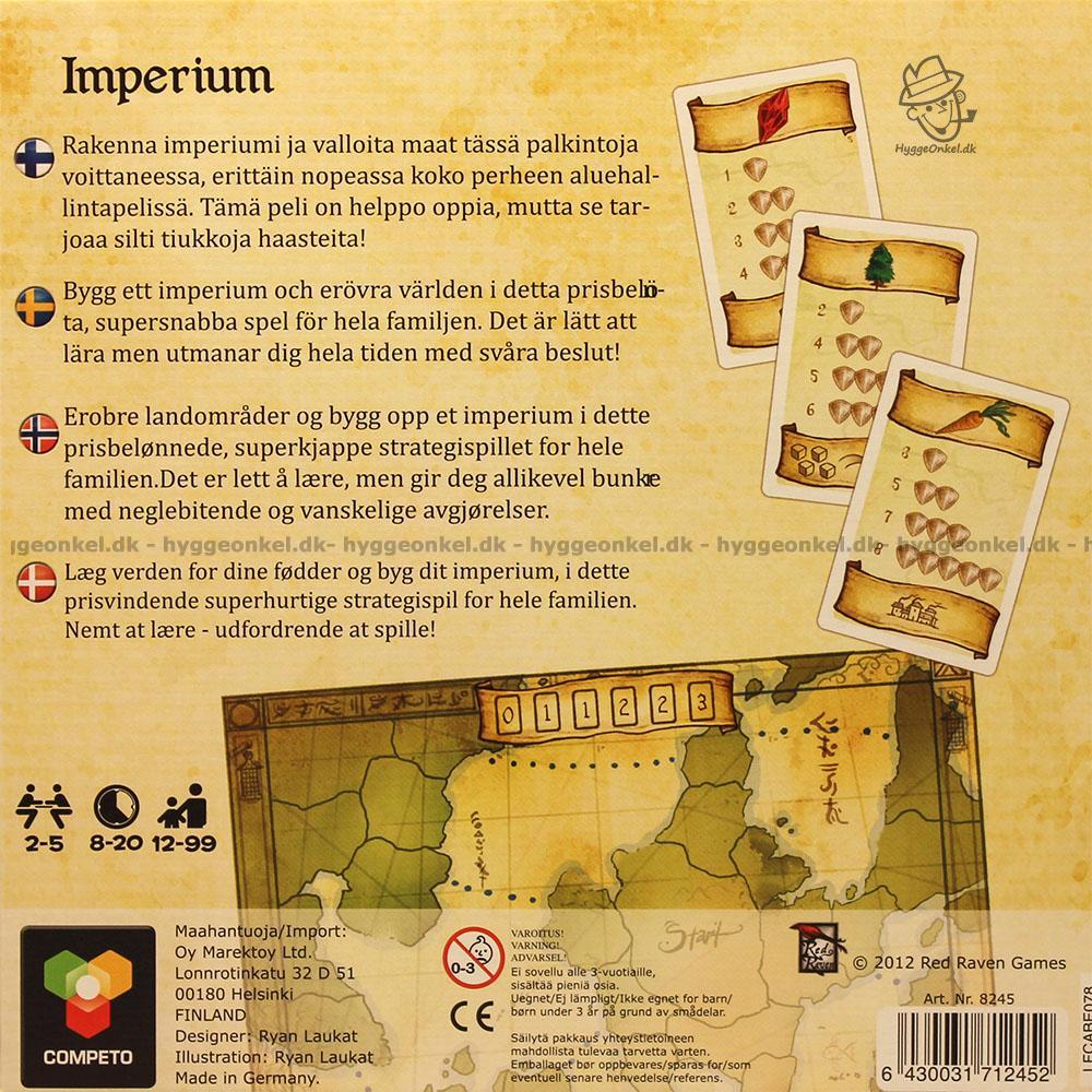 Den engelska titeln är Eight-Minute Empire (imperium på åtta minuter), vilket väl på ett tydligt sätt antyder att spelet går blixtsnabbt att spela! Det kanske inte alltid tar just åtta minuter att spela en omgång, men 10-15 minuter är inte direkt eoner av tid heller.