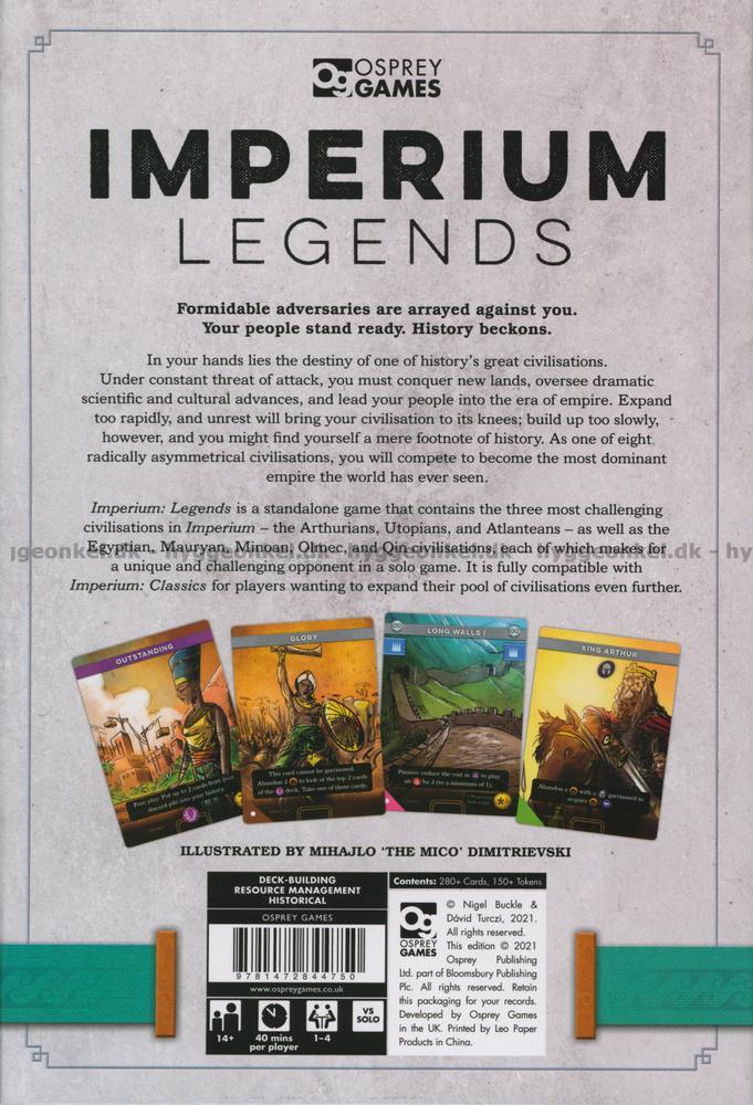 Imperium: Legends innehåller följande civilisationer: Arthurian, Utopian, Atlantians, Egyptian, Mauryan, Minoan, Olmec och Qin.