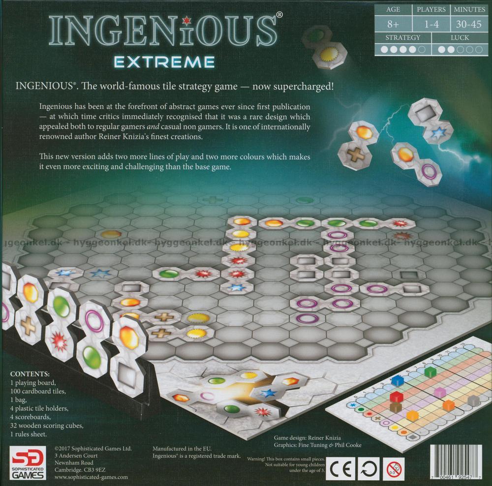 I kartongen hittar du ett bräde, 100 brickor, marker, 4 poängtavlor och spelregler på engelska.
