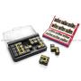 Asken är en smart plastask som kan stängas. Alla delarna ligger i asken när den är stängd. Den kan därför tas med överallt. Det är bara att ta fram den när du har tid och lust för lite hjärngympa.