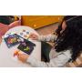 Asken är en smart liten ask i plast som kan stängas. Alla delarna ligger inne i asken när den är stängd. Den kan därför tas med överallt. Du kan alltså ta fram den när som helst du har tid och lust för lite hjärngympa.