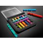 Asken är i plast och den kan stängas. Alla delarna ligger inne i asken när den är stängd. Den kan därför tas med överallt och bjuda på underhållning när du har tid och lust för lite hjärngympa.