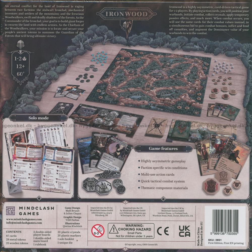 Ironwood är ett taktiskt brädspel för 1–2 spelare där två fraktioner kämpar om kontrollen över de magiska Larimor-kristallerna. Spelet ställer Ironclad, en grupp hårt arbetande bergsfolk, mot Woodwalkers, de mystiska och snabba skogsborna.