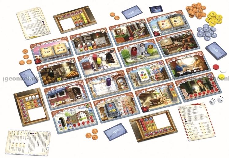 Spelet innehåller rubiner, pjäser, tärning, kort, en mängd brickor i kartong och så naturligtvis även ett häfte med spelregler (på engelska).