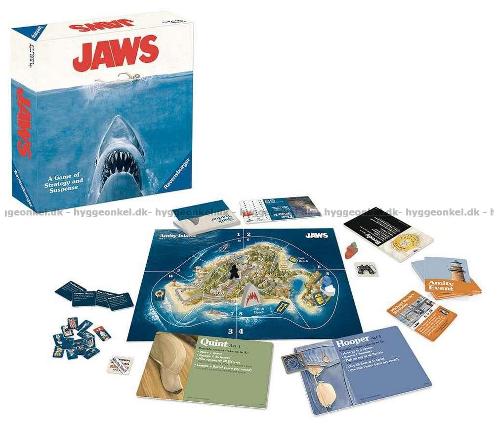 Jaws är ett asymmetriskt spel där man antingen kan spela hajen eller bli en del av teamet med Brody, Hooper och Quint som ska samarbeta om att jaga hajen.