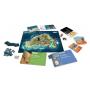 Dubbelsidigt spelbräde, kort, tärningar, pjäser i trä och "haj-poängtavla".