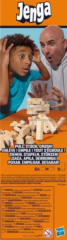 Spelet består som nämnts av 54 klossar, spelregler (men dessa kan du ju nu) samt en ramp i kartong som kan användas för att snabbare konstruera tornet.