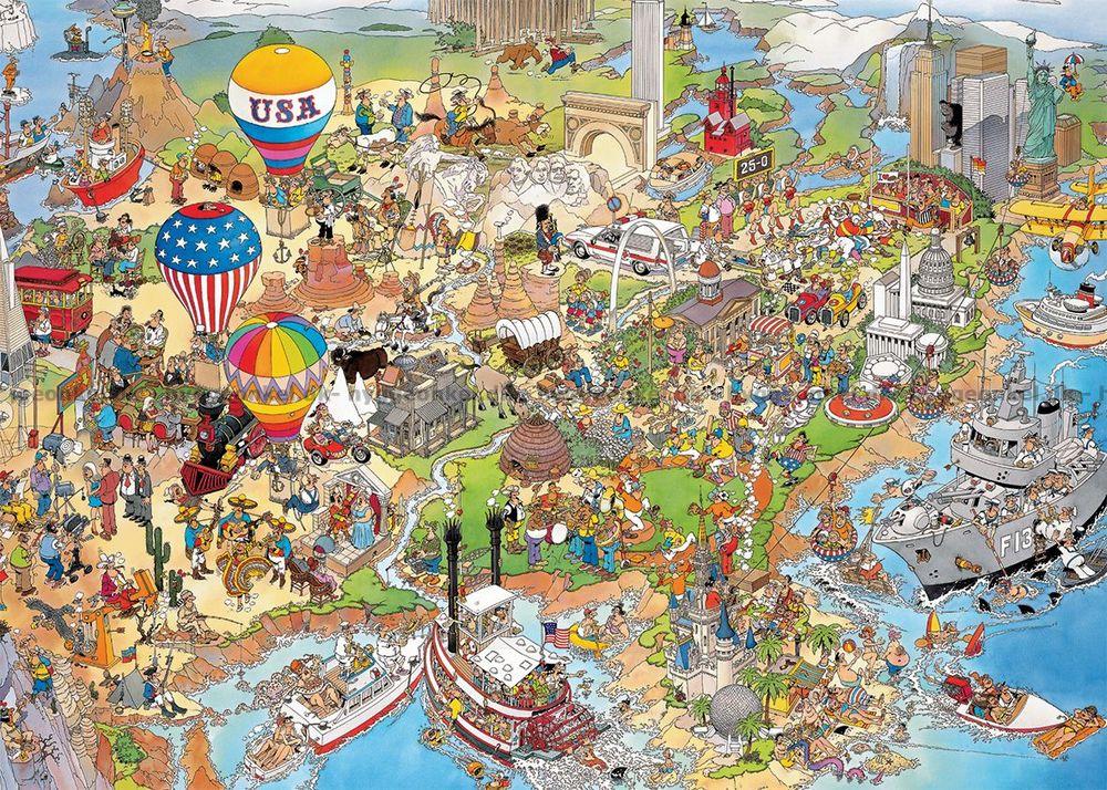 - Hela USA samlat på ett motiv här med en humoristisk glimt i ögat. Du kan säkert känna igen många av de saker som finns på bilden!