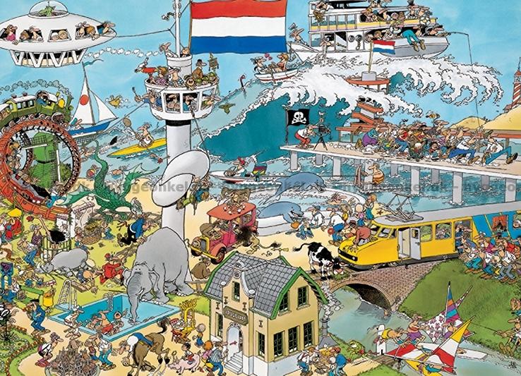 - Motivet är ritat av den nederländske konstnären Jan van Haasteren, som har ritat många pussel med roliga detaljer