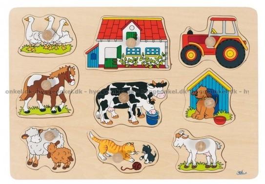 - Följ med på en tur till bondgården och möt några av de många djur som bor där. Lek och lärande på samma gång. Bitarna är stora och passar de minstas fingrar.