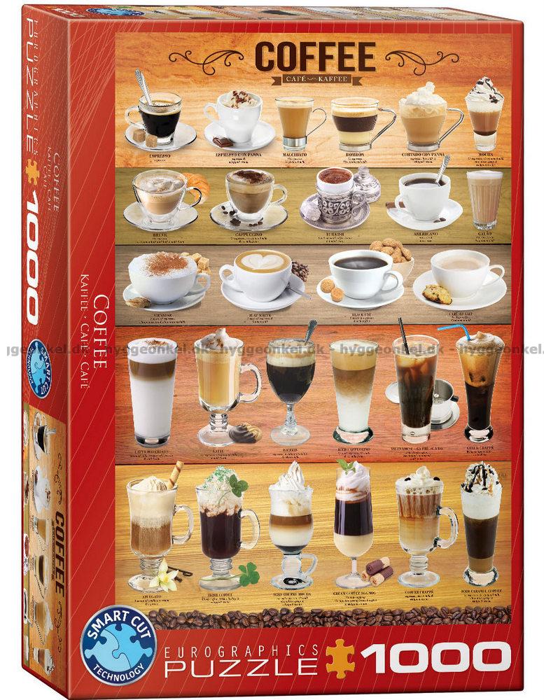 - En rad olika kaffedrycker presenterade i vackra koppar och glas