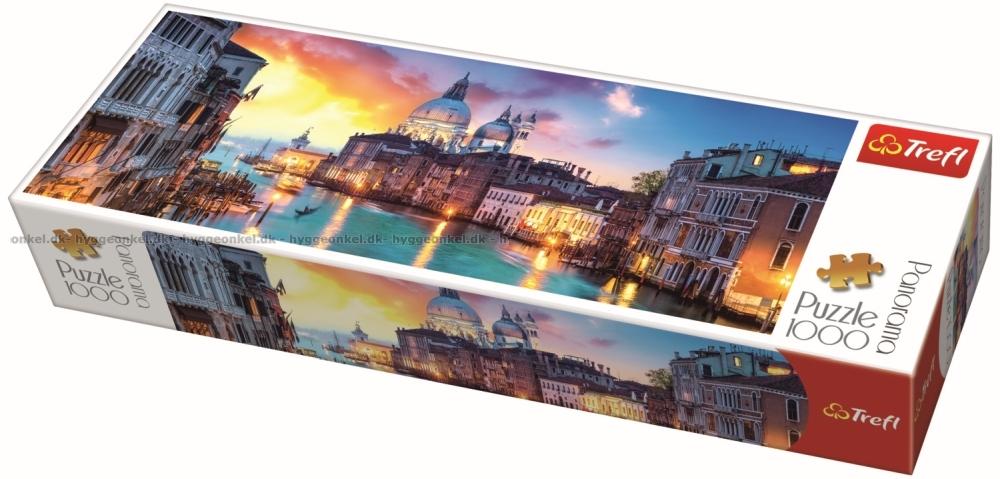 - Detta är ett panoramapussel. Det är bredare än andra pussel med 1 000 bitar. Däremot är det något lägre