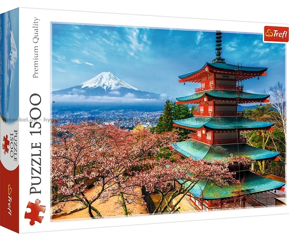 - I förgrunden ett japanskt tempel. I bakgrunden det vackra snötäckta berget