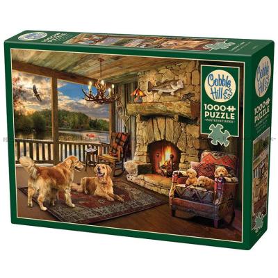 - Medan solen går ner över vattnet, njuts en stilla stund på verandan