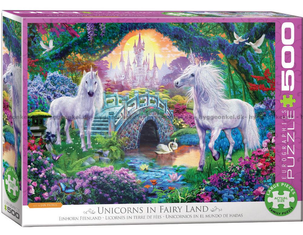- De 2 enhörningarna möts framför bron som leder över till det sagolika slottet