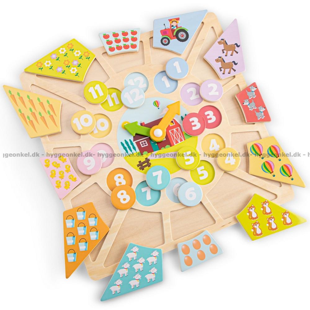 - Lär dig klockan med detta färgglada pussel i fina färger. Siffran matchar ett motiv med samma antal figurer på. Ett roligt och lärorikt sätt att lära sig klockan på.