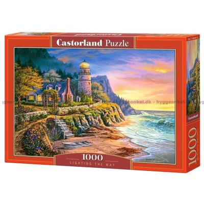- Fyrtornet står vid den lilla kuststaden. Den hjälper skeppen att hitta rätt väg på natten