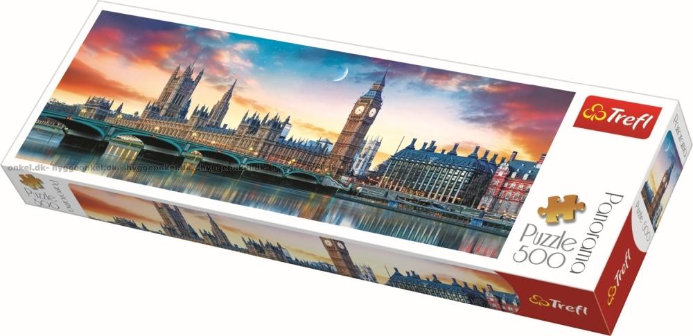 - Detta är ett panoramapussel. Det är bredare än andra pussel med 500 bitar. Däremot är det inte lika högt