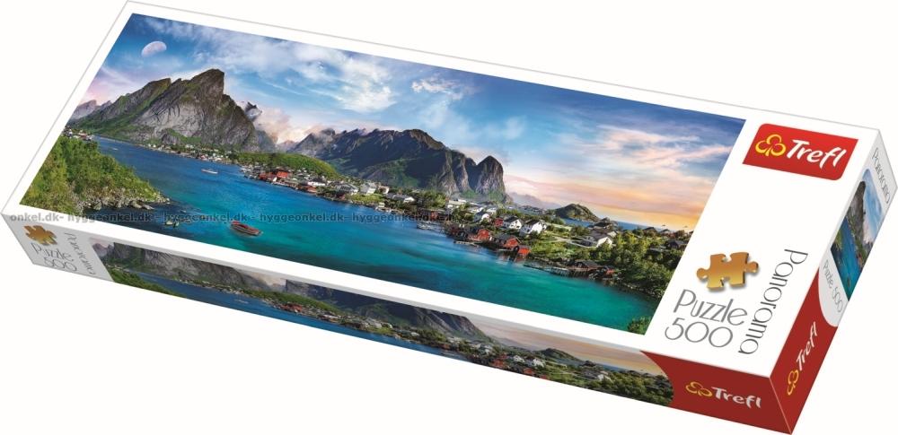- Detta är ett panoramapussel. Det är bredare än andra pussel med 500 bitar. Däremot är det inte lika högt