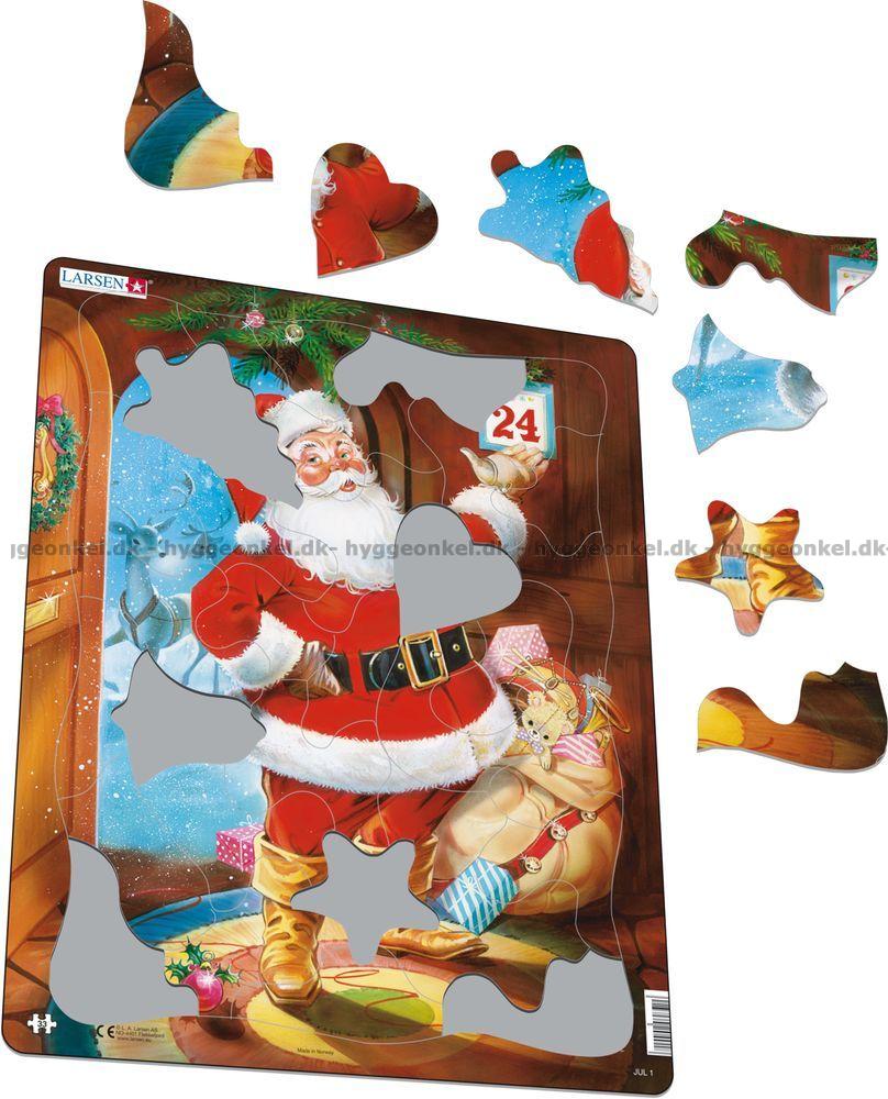 - Jultomten har anlänt med presenter den 24 december. Renarna står och väntar i bakgrunden