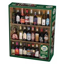 - En samling vinflaskor arrangerade i alfabetisk ordning. Varje flaska har en unik etikett som representerar en bokstav från A till Z