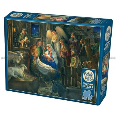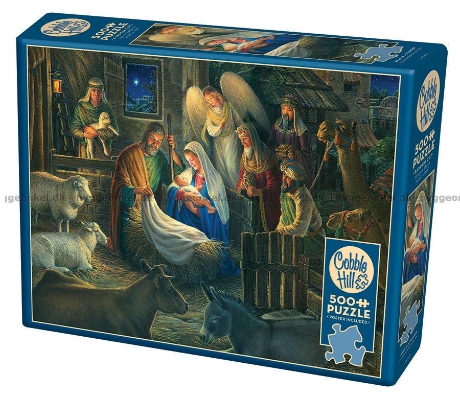 - Jesusbarnet ligger i krubban. Den lysande stjärnan lyser upp på natthimlen