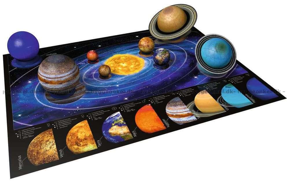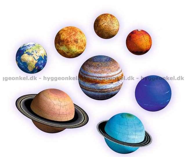 - Återskapa solsystemet med detta set med 8 olika 3D-pussel