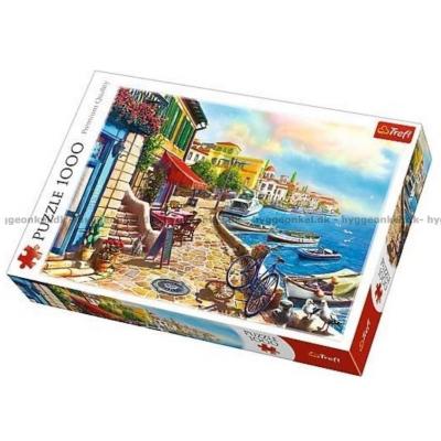 - Roger Blachon har ritat motivet. Pusslet ligger i en trekantig ask. En affisch med motivet medföljer