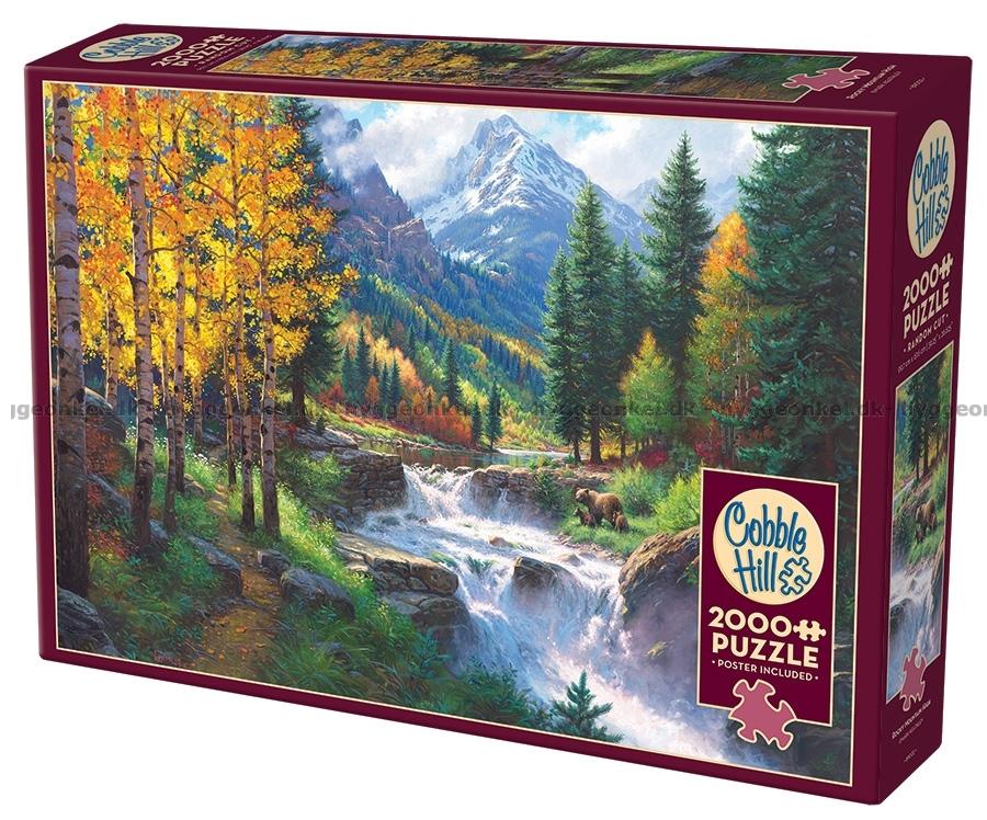 - Floden dånar genom bergslandskapet. Hösten håller på att sätta sin prägel på naturen
