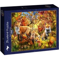 - Höstfärgerna har satt sin prägel på naturen. En rävfamilj står bland de färgglada löven