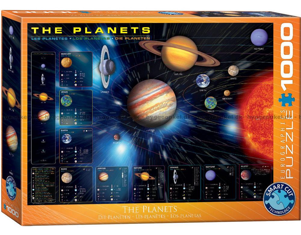 - Solsystemet med alla planeterna i en färgglad och detaljerad presentation. Solen strålar klart på högra sidan och kastar ljus på de omgivande planeterna