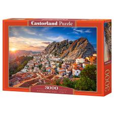 - En pittoresk bergsby breder ut sig under en vacker solnedgång. De varma färgerna från solen kastar ett gyllene sken över hustaken