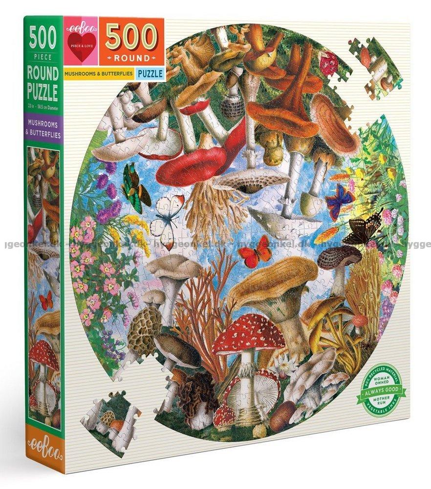 Fjärilar och svamp - Runt pussel, 500 bitar
