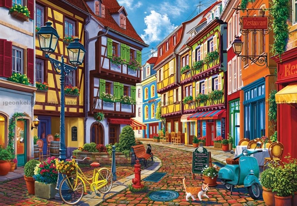 - De vackra korsvirkeshusen ligger sida vid sida på den smala gatan