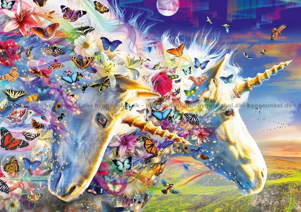- De två förtrollande enhörningarna är omgivna av fjärilar