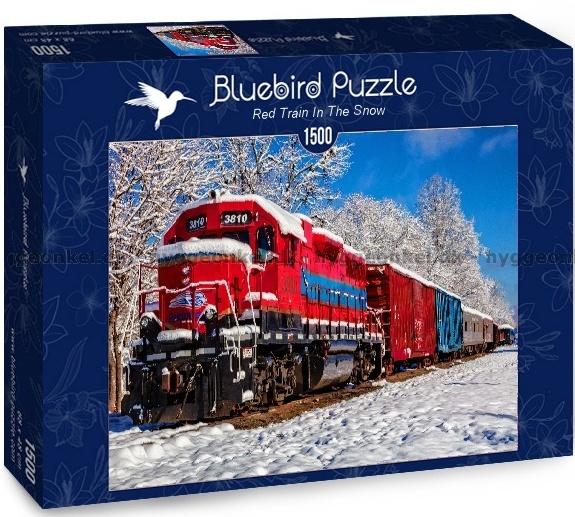 - Ett vackert rött tåg med en lång rad vagnar efter sig