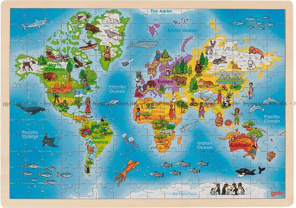 - Pusslet är gjort av trä. För många barn kan det vara skönt att det finns en ram utanför bitarna, så att de vet pusslets storlek. Bitarna är 0,8 cm tjocka