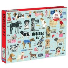 - En färgstark samling av olika hundraser, var och en med sitt unika utseende och personlighet. Varje hund är illustrerad med rasens namn skrivet bredvid