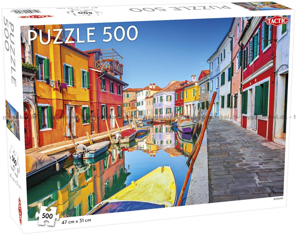 - En rad färgglada hus sträcker sig längs kanalen. Husen är målade i klara nyanser av gult, rött och rosa, vilket skapar en livlig atmosfär.