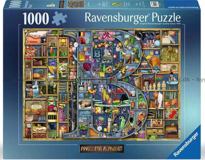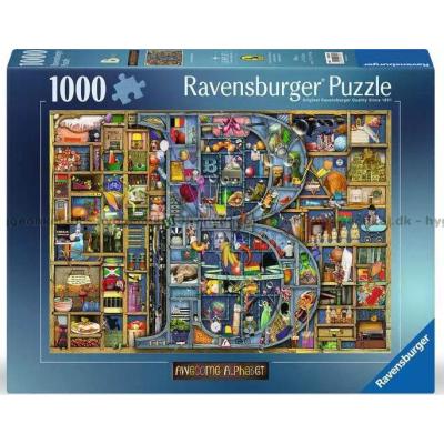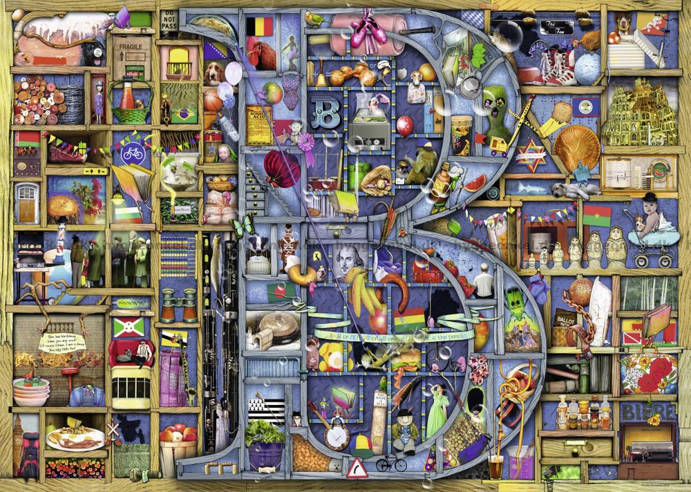 - En bokhylla fylld med saker som alla börjar med B (det handlar om engelska ord)