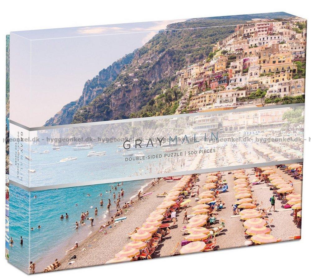 - Pusslet är dubbelsidigt. Man kan alltså lägga 2 olika motiv med samma bitar. Motiven är ritade av Gray Malin