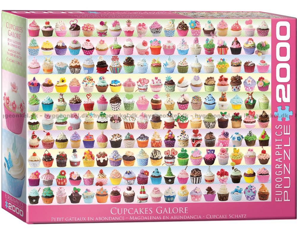 - Collage med en lång rad färgglada och inbjudande cupcakes