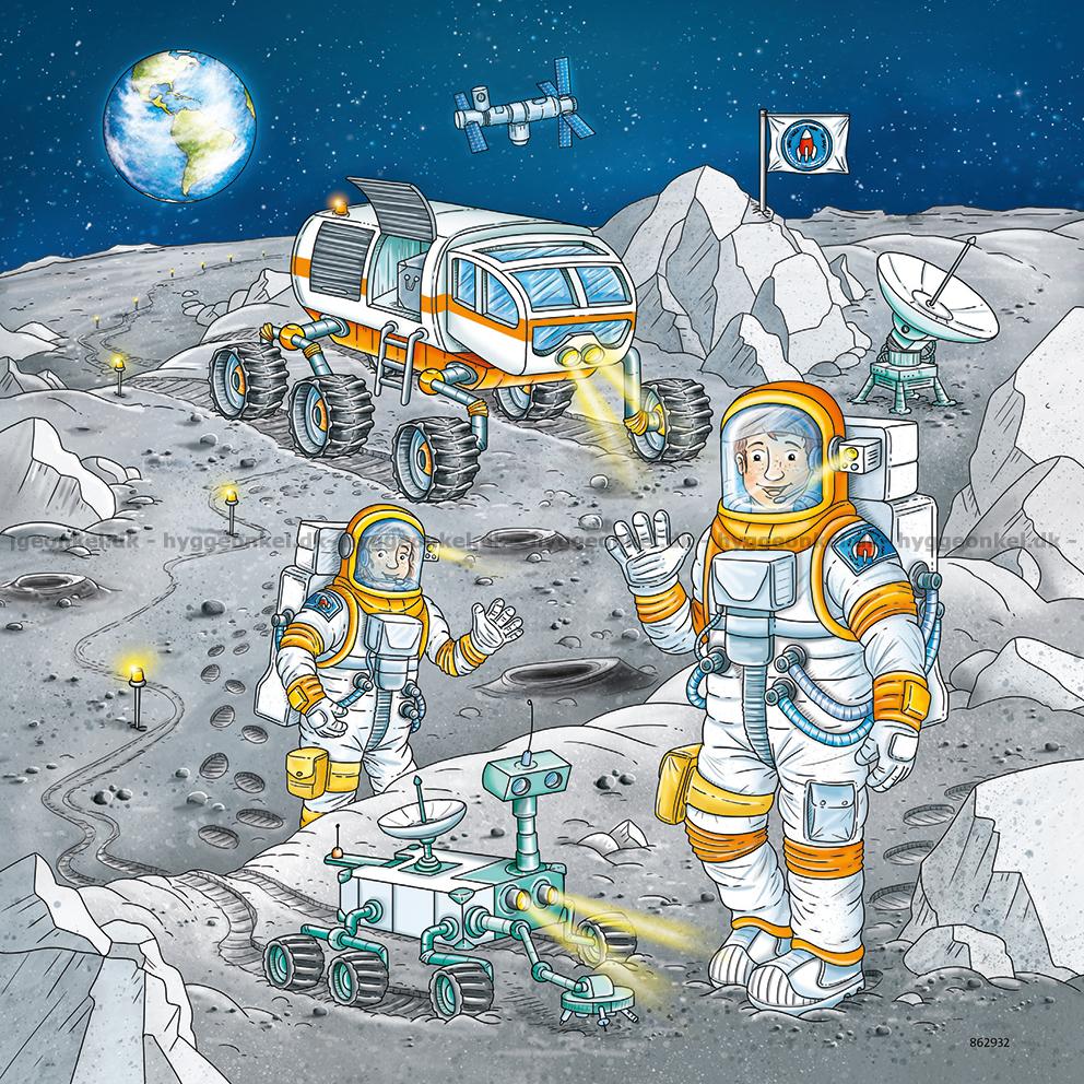 - Här får du 3 olika tecknade motiv i en ask med barnen på rymdresa
