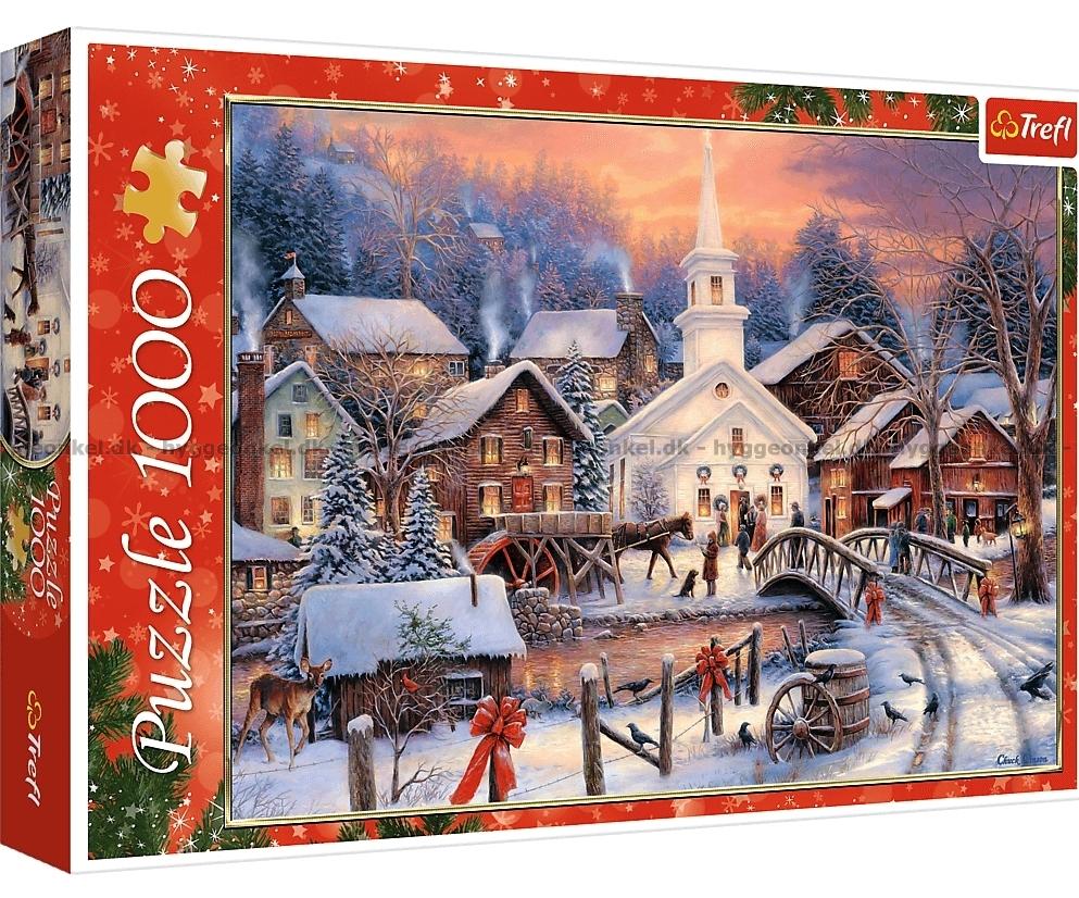 - Snön ligger som ett tjockt täcke över staden. I stadens mitt står den vita kyrkan